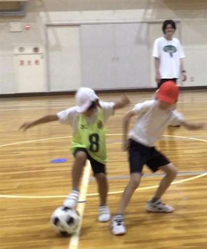 ボールを蹴る 止める 運ぶ などの練習をした後、ゲームを楽しみました。