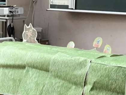 2年生は、国語の学習で「にゃーご」の人形劇を下級生に発表しました。