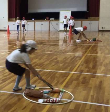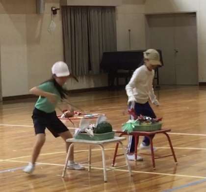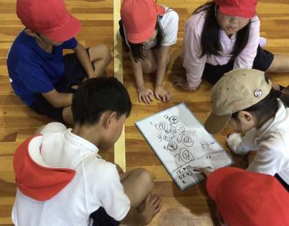 今日は、3・4年生が中学年競技の練習をしました。走順やペアを話し合いで決め、実際に競技に挑戦しました。4年生が、一人一人の思いを聞き話し合いを進めたり、競技のポイントを伝えたりする姿が見られ、上学年としての意識が育っています。