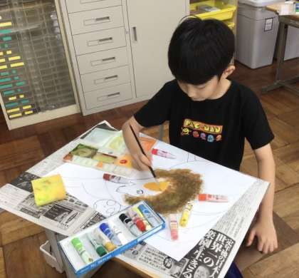 お話を聞き、想像を広げて画用紙いっぱいに表していました。