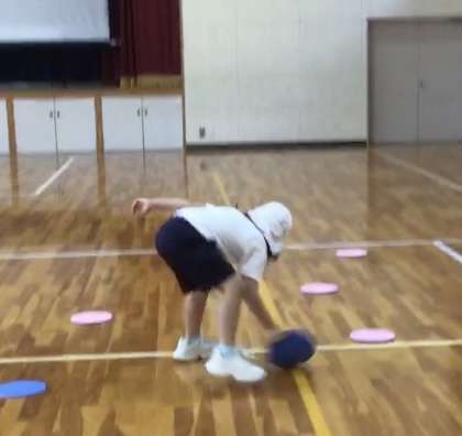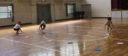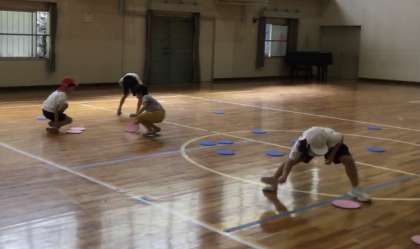 片面がピンク、片面が水色の色板を自分のチームの色になるように返していきます。友達と作戦を立てながら、楽しんで取り組んでいました。