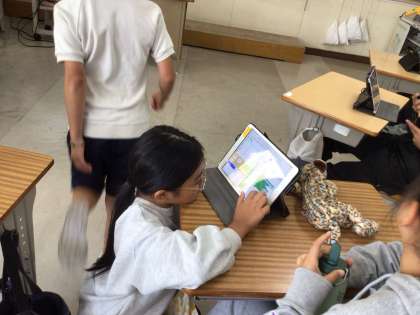 ICT支援員さんが来校され、プログラミングについて詳しく学んでいました。