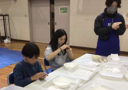 保護者の皆様も、熱心に丸めていました。