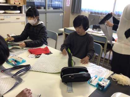 今回は、ミシンを使っています。手縫と違い、素早く縫うことができる良さを実感していました。