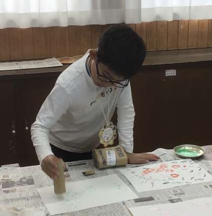 1・2年生図画工作科「ぺったん コロコロ」の学習です。