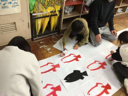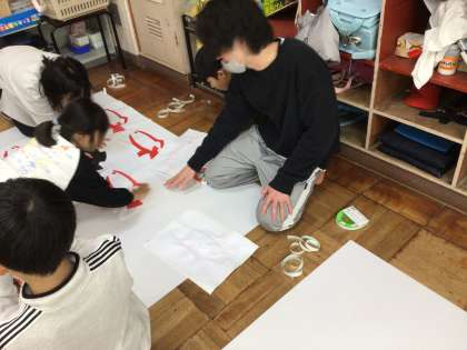 みんなが頭をくっつけるぐらい集まって 製作していました。