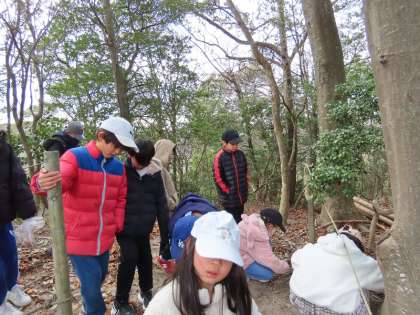 どんぐりの学習をした後は、野鳥の森に行き、実際に観察しました。