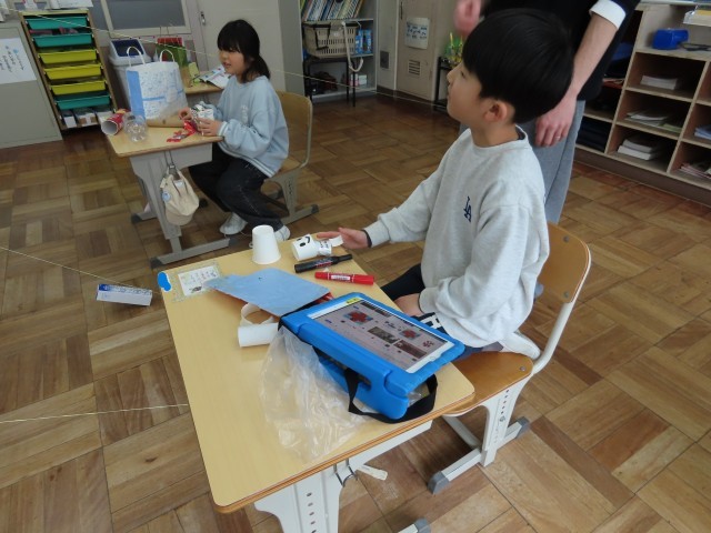 1・2年生は図工の時間に「スルスルビューン」の学習をしました。