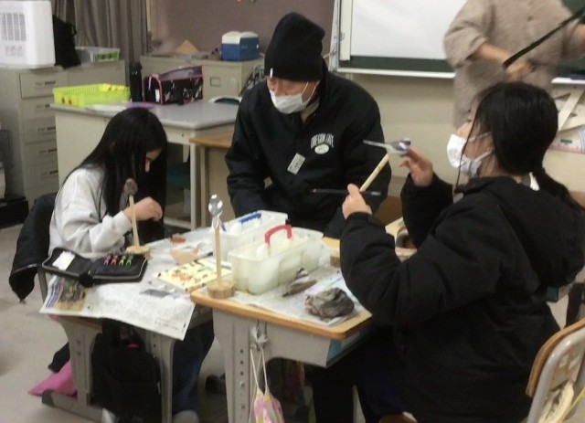 5・6年生が愛鳥活動の一環としてバードカービングに取り組んでいます。