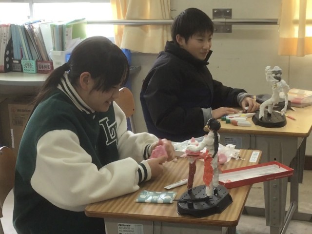 紙粘土や針金を使って「あこがれの自分」を作りました。未来の自分、あこがれの自分を動きのある姿で表現しました。