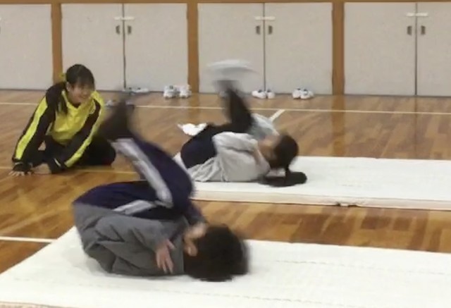今日は、後転や開脚後転、開脚前転などに挑戦しました。手のつき方や足の開き方などに気をつけて、何度も練習をしていました。
