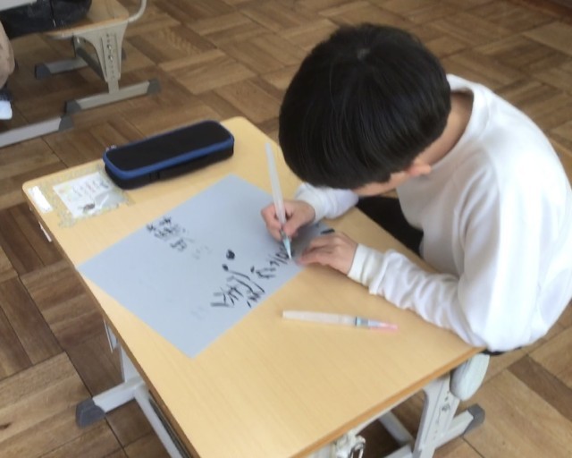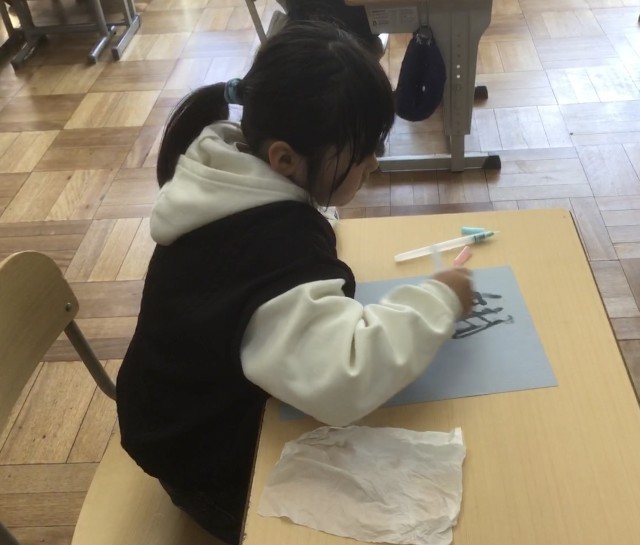 2年生が書き方で水筆を使いました。