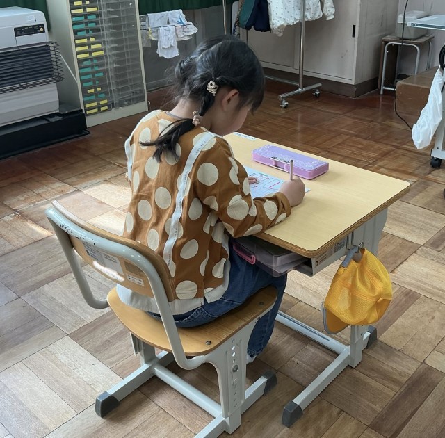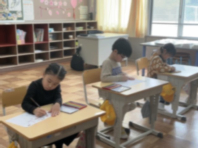 1年生 国語の学習です。ひらがなの学習も少しずつ進み、今日は「し」の練習をしました。