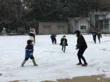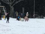 学年関係なく雪で遊んでいる滝っ子たち、とてもほほえましいです。雪玉をころころ転...