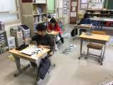 3年生は、毛筆で初めての書き初めです。3年生も4年生も、半紙に向かい、集中して...