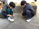 登校すると、大きな氷ができていていました。寒い朝ですが、元気に登校できました。