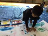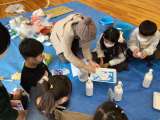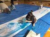 外部講師を招いて、図工の学習をしました。5メートルほどある紙2枚に、12人で絵...