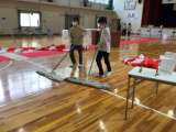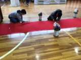 体育館の準備では、赤絨毯をきれいにしたり、テラスを掃いたりしました。