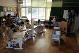 2チームに分かれて活動をしました。大きな木を揺らして雨水を落とす「トトロがドン...