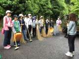 子どもたちは、地域の方が刈ってくださった草を集めて捨てたり、看板をきれいにした...