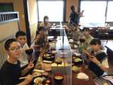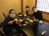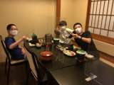無事に旅館に着きました。夕食の時間、目の前に並ぶいろいろな料理に、歓喜の声が上が...