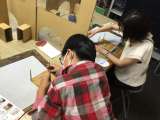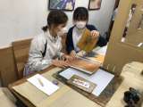 京都に来ました。友禅染めの体験をしました。ハンカチに染めたい絵を決め、その型紙を...