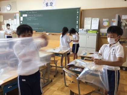 4年生は理科で閉じ込めた空気や水について学習しています。