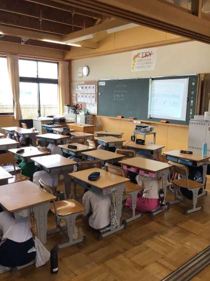 シェイクアウトは、「姿勢を低く」「頭を守り」「じっとする」という3つの動きを身につけ、地震の揺れから自分の命を守るための行動です。シェイクアウトは「地震の揺れに備えろ!」という意味で考えられた言葉(造語)です。今日は、いざというときに素早く安全確保とシェイクアウトの動きがとれるようにする訓練です。みんな真剣に取り組みました。