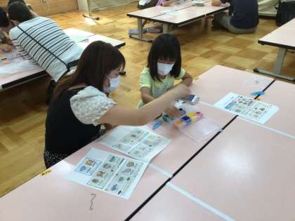 アイロンビーズ・・ビーズで思い思いの形を作り、アイロンで固めたら完成です。