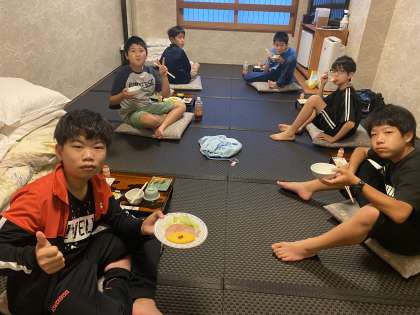 時間通りに起床し、全員元気です。 朝ご飯、いただきます!
