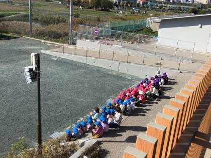 寺部こども園の子たちが、1,2年生の体育授業参観の練習を見に来ました。