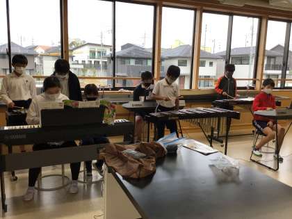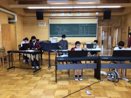 息を合わせて・・ 公開日 2022/11/30 更新日 2022/11/30 各学年から 6年生が音楽の授業で「風を切って」の合奏に挑戦しています。 ピアノ、オルガン、木琴、タンバリンを使い、強弱を意識して上手に演奏することができました。