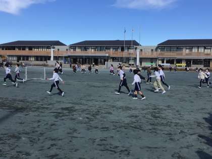 運動場で遊んでいた子たちはすぐに中央に集まり、校舎の中にいた子はシェイクアウトの体勢をとって、放送や指示を聞くことができました。