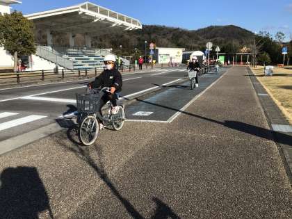 4年生が交通安全センターへ行き、自転車の乗り方について学習しました。