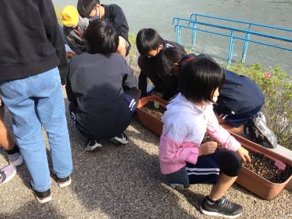 ふわふわの綿(ワタ)ができるかな? 公開日 2023/05/08 更新日 2023/05/08 特別活動 今年の生活委員会は綿(ワタ)の花を育てます。 うまく育つと夏に白い花が咲き、実ができて、実が弾けると真っ白で柔らかな綿が出てくるそうです。 楽しみですね。