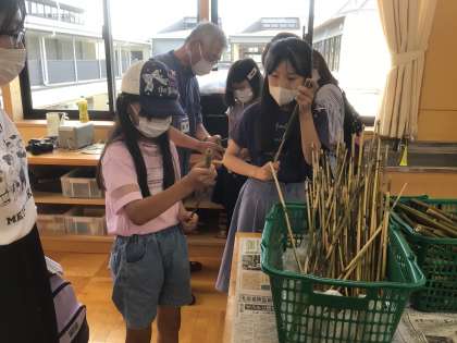 ペタンク、ウボンゴ、竹とんぼ作りの様子です。