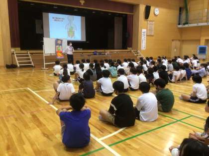 5、6年生を対象にヤクルト販売会社の方を講師としてお招きし、生活リズムを整えることと排便習慣を身につけることの大切さを学習しました。