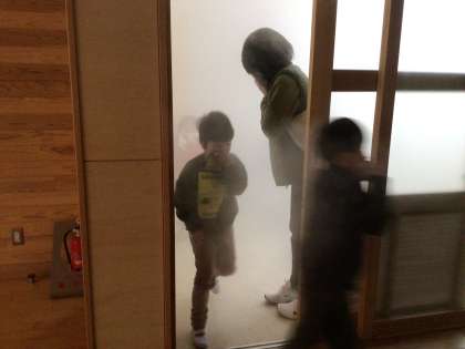 煙が充満した教室の中を、姿勢を低くして壁をつたいながら歩きました。