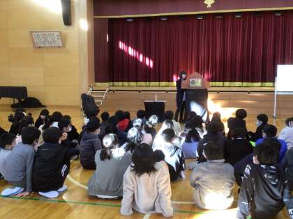 5年生 平和学習を行いました 公開日 2024/01/19 更新日 2024/01/19 各学年から 5年生が平和学習を行いました。 壁画家の松井エイコさんから戦争の恐ろしさや平和の大切さについて お話や紙芝居から教えていただきました。