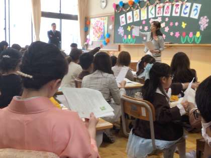 新1年生の様子を見た先生方は、「長い間じっと座っていて偉いね」とほめていました。