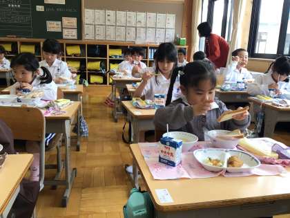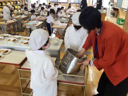 小学校での初めての給食でしたが、みんなで協力して配膳をすることができました。