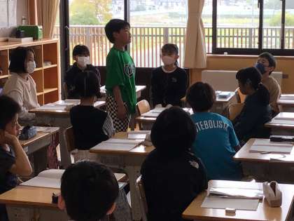 まっすぐに挙手をしたり、友達の方を向いて意見を聞きあったりしていて授業態度もとてもよいです。