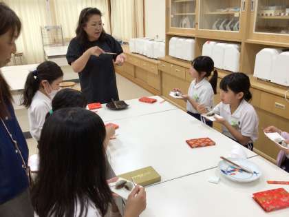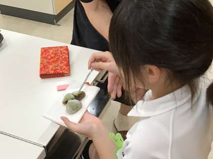 6月17日 クラブ活動(お茶クラブ) 公開日 2024/06/17 更新日 2024/06/17 特色ある学校づくり推進事業 クラブ活動が始まっています。 お茶クラブは、地域講師さんに教えに来てもらっています。 やわらかいお菓子を手の上で切るコツを学びました。