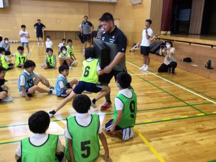 お話を聞いた後、体育館でラグビーボールを使ったゲームをし、屈強なラガーマンたちの力強さを間近で感じることができました。