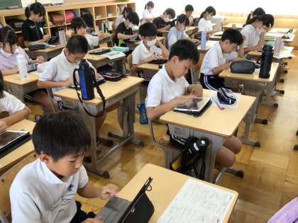 9月6日 5年生社会 公開日 2024/09/06 更新日 2024/09/06 学校行事 5年生社会の授業では、台風を勉強しています。 わかったことや、気が付いたことを、タブレットを使ってまとめていました。