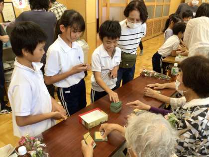 9月20日 3年ぬくもりの会 公開日 2024/09/23 更新日 2024/09/23 学校行事 お年寄りと3年生の皆さんで「ぬくもりの会」を行いました。 優しく接してくださるお年寄りと、ゲームで無邪気に喜ぶ子どもたちとの交流では、とても温かい時間を過ごすことができました。おじいちゃん、おばあちゃんと接する機会の少ない子にとっては貴重な経験になったことでしょう。