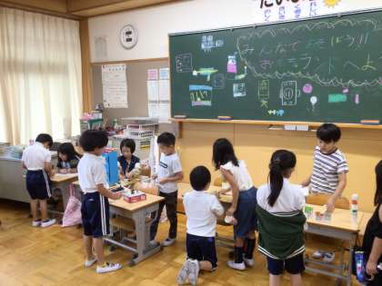 10月3日 2年 1年生とおもちゃで遊んだよ 公開日 2024/10/03 更新日 2024/10/03 各学年から 授業参観のときに保護者の方と遊んだおもちゃを使って、今度は1年生と一緒に遊びました。遊び方を教えてあげたり、やって見せたりを上手にすることができました。自慢のおもちゃを喜んで使ってくれると、作った甲斐がありますね。