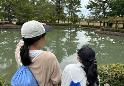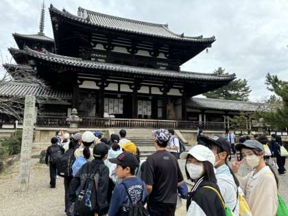 法隆寺を見学しました。 天気は曇りで、過ごしやすいです。