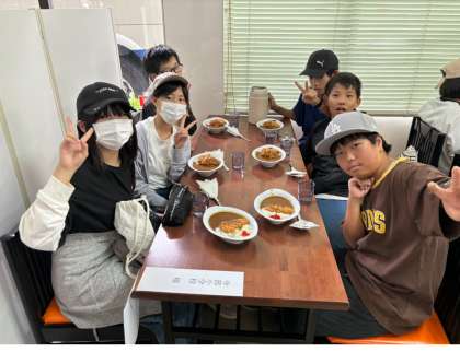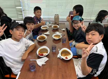 お昼はカレーライスを食べました。 大きなカツが入っていて、お腹いっぱいです。