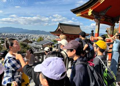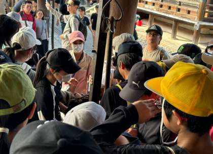 10月17日 6年修学旅行2日目 清水寺 公開日 2024/10/17 更新日 2024/10/17 学校行事 最後の散策は清水寺です。 学級写真を撮った後は、清水寺の本殿まで坂を登って行きました。 外国からの観光客や修学旅行生がたくさんいたので、早歩きで見て回りました。 班別活動では、家族や自分へのおみやげをたくさん買いました。 この後、帰途につきます。
